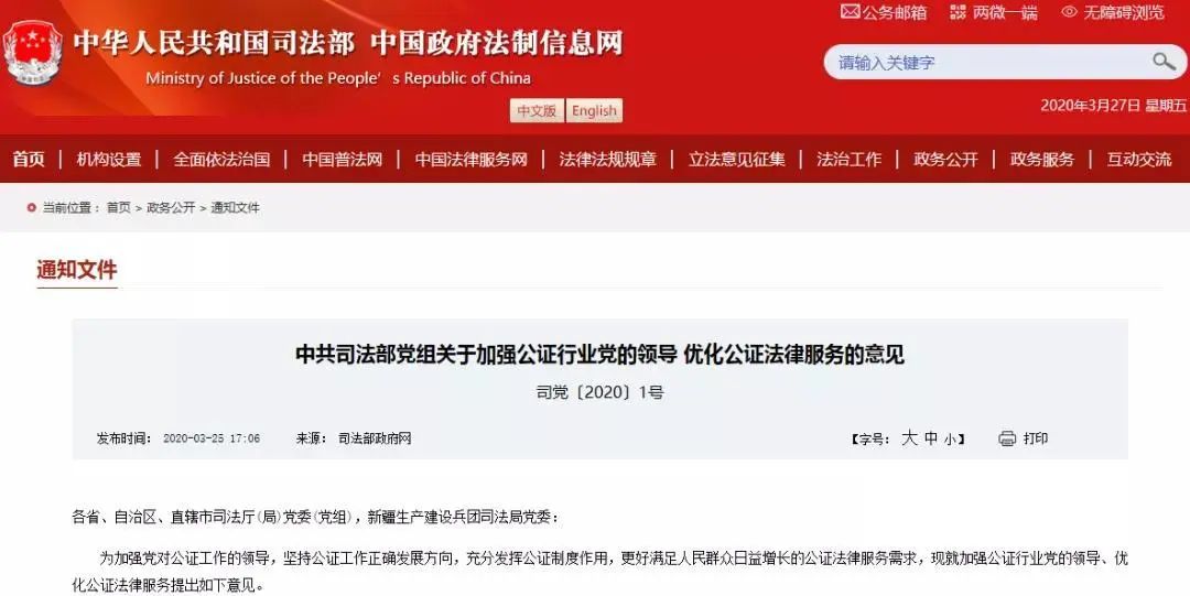 近日,中共司法部党组发布《关于加强公证行业党的领导 优化公证法律服务的意见》,明确要深入推进“互联网+公证”服务。